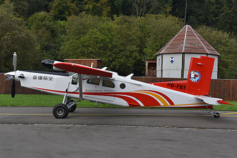| HB-FBT (2) at Buochs in full Asian Express Aviation colors - Photo by Stephan Widmer © 23-Sep-16 |