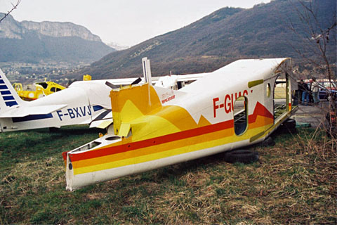 F-GUAS of Parachutisme 74 at Annemasse - Photo by Markus Herzig © 10-Apr-99 | F-GUAS at Challes-les-Eaux - for the moment a final place - Photo by Alain Geneve © Mar-03 |