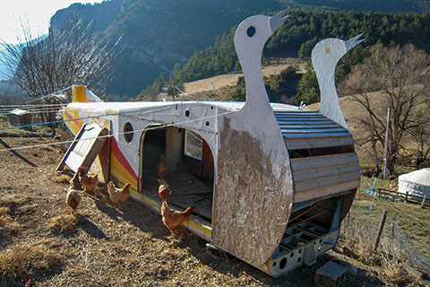 F-GUAS at the final destination making some chickens very happy - Photo by Michel Huici © 2017 | Former F-GUAS - Photo by Michel Huici © 2017 |