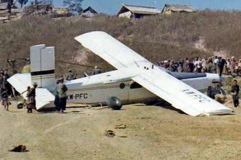 XW-PFC of Continental Air Services Inc on the ramp at Pakse Laos - Photo by David Kouba © 1970s | XW-PFC of Continental Air Services Inc after an accident in Laos - Photo by David Kouba © 1970s |