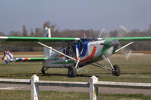 F-GFDC between F-GODZ and G-WGSC at Avignon-Pujaut - Photo by Simon Basso © 18-Oct-03 | F-GFDC landing in the snow at Barcelonnette - Photo by Louis Bothy © 13-Jan-08 |