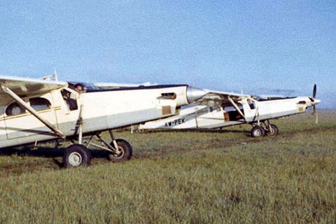 XW-PEK and XW-PDI of Continental Air Services Inc. - Photo by Lee Gossett © 1970 |