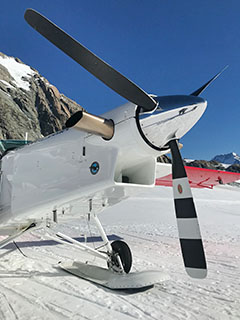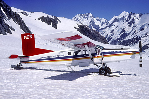 HB-FCV at Christchurch during delivery to Mount Cook Airline - Photo by Daniel Tanner © 6-Jan-83 | ZK-MCN of Tourism Holdings Ltd at the Mount Cook base - Photo by Lenn Bayliss © Apr-99 |