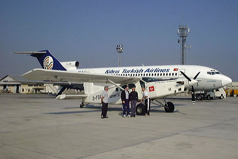D-FSKY during a fuel stop at Ercan for the winter camp - Photo by Thomas Schaub © 7-Jan-98 | D-FSKY on an oil strip in Algeria on lease to Zimex Aviation - Photo by Craig Hill © 1999 |