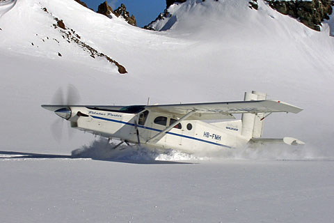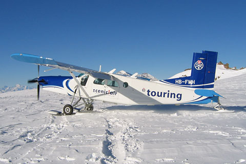 | HB-FMH of Scenic Air AG at Bern-Belp airport - Photo by Markus Herzig © 18-Mar-05 - MHP | HB-FMH of Scenic Air on the Petersgrat glacier - Photo by Walter Infanger © 20-Mar-05 |