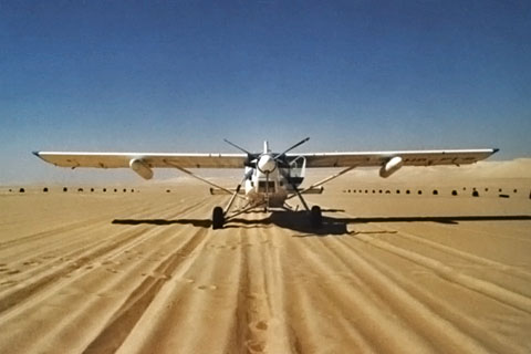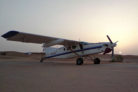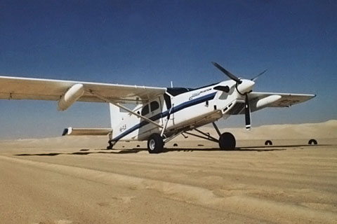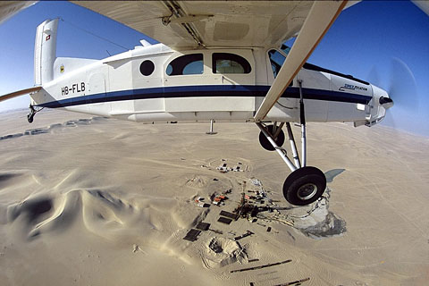 HB-FLB of Zimex Aviation in the sand at UU-Station in Libya - Photo by Juergen Riedel © 2001 | HB-FLB of Zimex Aviation over the Libyan Sahara - Photo by Jean Michel Ribeyre © 2004 |