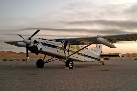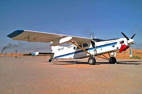| HB-FLE of Zimex Aviation at Zurich with Agip stickers - Photo by Nicky Scherer © Mar-03 | HB-FLE of Zimex Aviation on an airstrip in Algeria - Photo by Renaud Brehat © 14-Nov-06 |