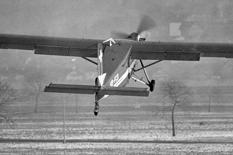 | HB-FCD of Pilatus Flugzeugwerke AG with a takeoff from the taxiway - Photo by Peter Wernli © Mar-66 | HB-FCD over Switzerland - the B1-H2 prototype - Photo by Pilatus Flugzeugwerke AG © 1966 |