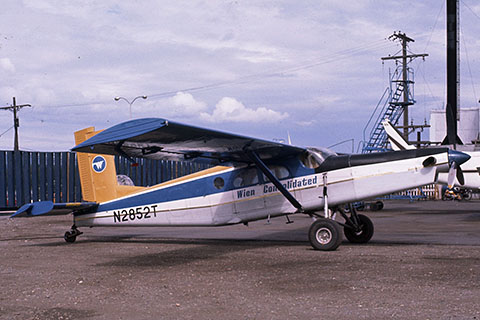 | N856FA with Flyalaska markings at Grenchen - Photo by Mario Richard © 17-Jan-26 | N2852T of Wien Consolidated Airlines - Photo by Peter Wernli © Aug-69 |