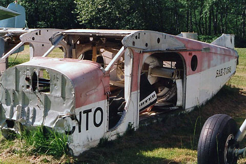 Stored fuselage of s/n 2038 still in Ejercito livery - Photo by Ian Wilson © May-05 |