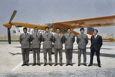Photosession with pilots and PC-6 - Photo courtesy Jaime Andrade © May-71 | SAE-T-1545 of Ejercito Ecuatoriana out in the country - Photo by Al Maye © Jul-71 |