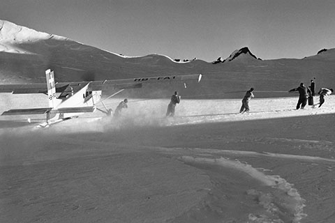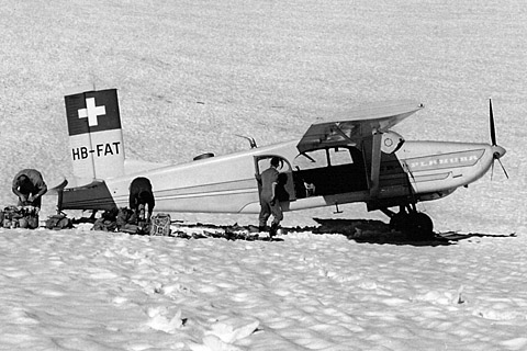 HB-FAT of Motorfluggruppe Zürich in operation for alpinists - Photo collection Peter Schwärzer © 1963 | HB-FAT of Motorfluggruppe Zürich at Samedan - Photo collection Werner Häuselmann © 1964 |