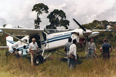 HB-FHM of Pilatus Aircraft at Borro airfield near Arezzo Italy - Photo by Augusto Laghi © 10-Jul-83 | HB-FHM in Guatemala - the future TG-AKE of Tukan SA - Photo by Huber family © 1984 |