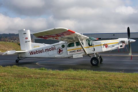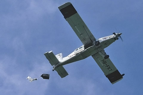 HB-FKT of Flying Devil SA on the gliderstrip at Bern - Photo by Markus Herzig © 25-Jun-99 | HB-FKT of Flying Devil SA dropping down load at Interlaken - Photo by Markus Herzig © 20-Sep-02 |