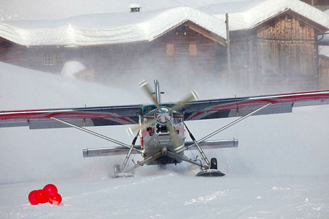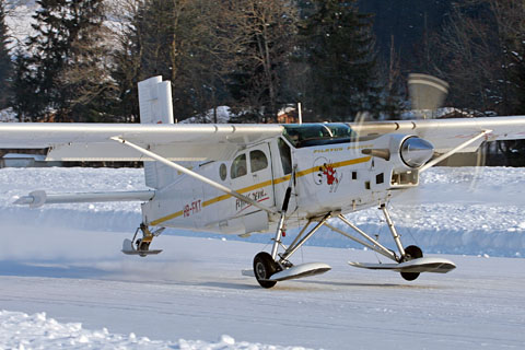 HB-FKT of Flying Devil SA at Interlaken after a rain shower - Photo by Markus Herzig © 20-Sep-02 | HB-FKT of Flying Devil SA taking off at snowy Saanen - Photo by Markus Herzig © 26-Feb-05 - ANET |