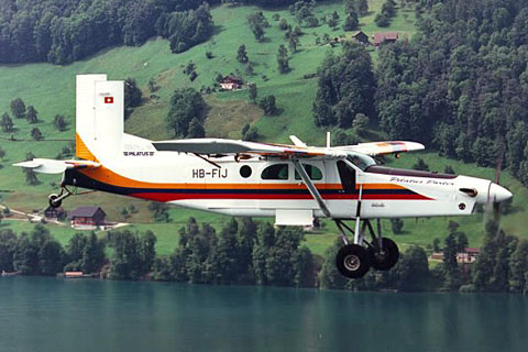 HB-FIJ of Pilatus Aircraft over a lake in Switzerland - Photo by Pilatus Aircraft Ltd © 1994 | HB-FIJ of Pilatus Aircraft flying as factory demonstrator - Photo by Pilatus Aircraft Ltd © 1994 |