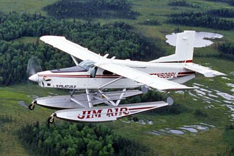N908PL of Jim Air Inc taking off on a lake just after delivery - Photo by Pilatus Aircraft Ltd © 1994 | N908PL of Jim Air Inc over a scenery in Alaska - Photo by Christian Müller © Aug-95 |