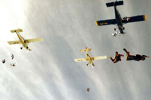 OO-NAP of Namur Air Promotion taking off at Namur-Temploux - Photo by Markus Herzig © 29-May-99 | OO-NAP in a jumping session with D-FALL and PH-JFD - Photo by Reynold Walrave © 2000 |